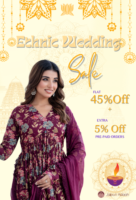 The ethnic wear for women at Jaipuri Adaah gets a rejuvenating light due to the mix of traditional craft and modern approach to clothing. A huge variety of all-season fashion and budget-friendly prices are waiting for you. At Jaipuri Adaah, you can find out ethnic wear for women with elegant designs as follows: