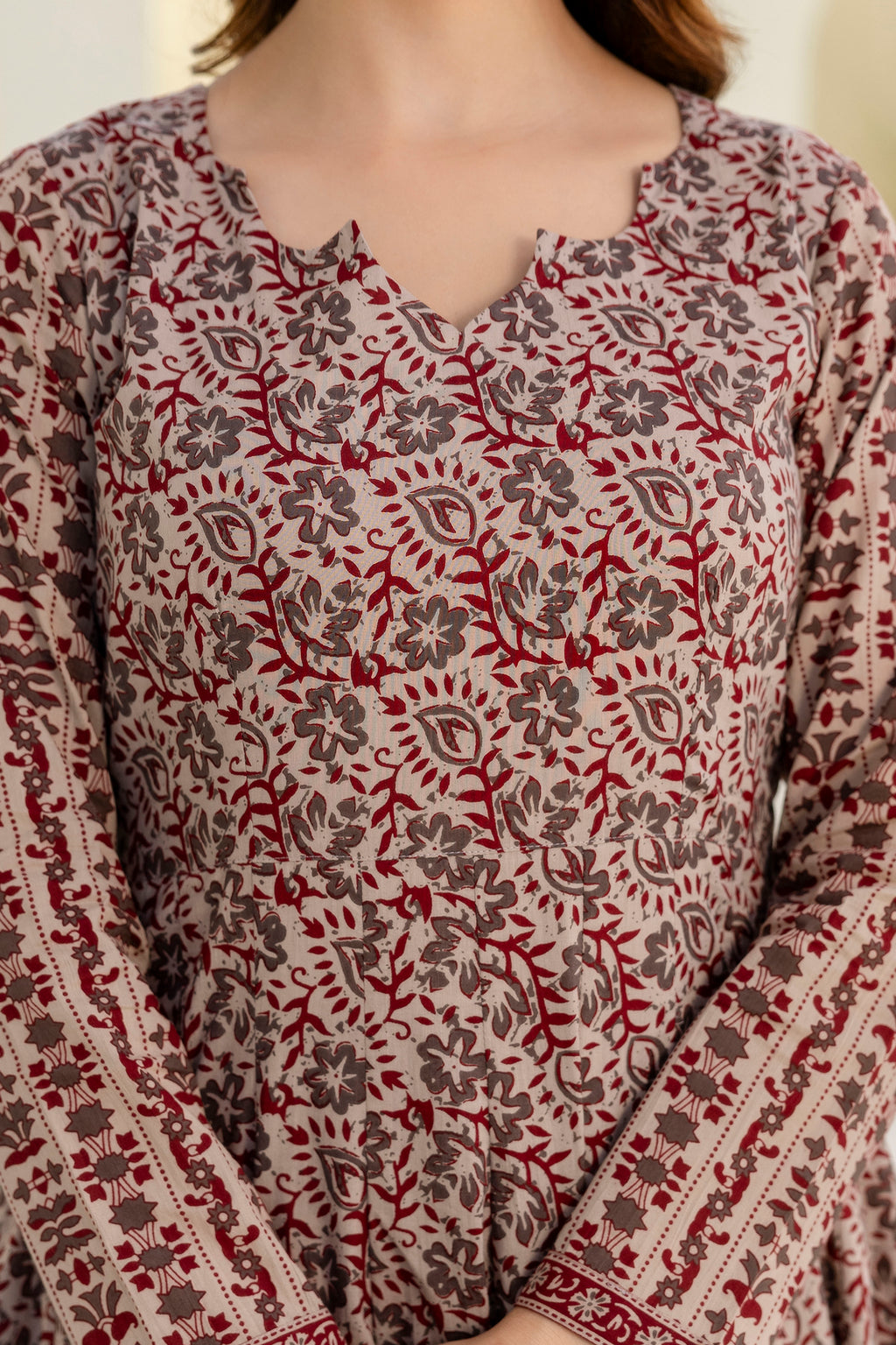 Nazakat Floral Anarkali Kurta and Pant Set is a graceful blend of timeless elegance and everyday comfort. Crafted in soft, breathable fabric, this ensemble features a beautifully flared Anarkali kurta adorned with delicate floral prints that exude charm and femininity. Paired with perfectly coordinated pants, it offers a flattering silhouette suitable for both casual outings and festive occasions. The soothing color palette and intricate detailing make it a versatile addition to your ethnic wardrobe, ensuring you look effortlessly stylish wherever you go.