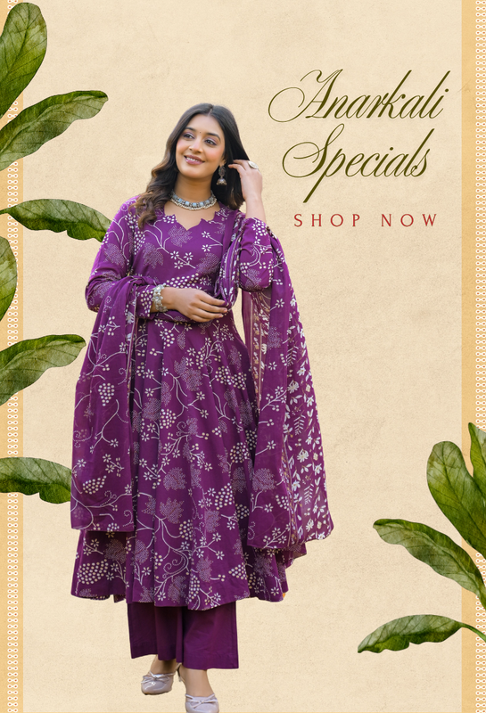 Anarkali Dresses: An evergreen trend, Anarkali at Jaipuri Adaah comes with a grand flair. Twirl your heart out in Bandhani, Kota Doria, and other dresses and post a pretty picture.