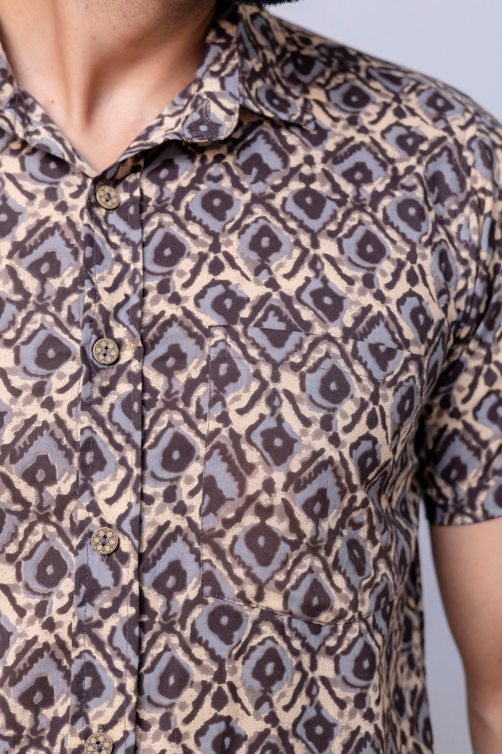 Make a bold statement with the Abeer brown printed cotton men’s shirt. Crafted from breathable cotton, it offers comfort while the striking print adds a daring edge to your look. Perfect for those who want to stand out confidently, this shirt pairs effortlessly with both casual and smart ensembles. Elevate your wardrobe with a piece that challenges the ordinary.