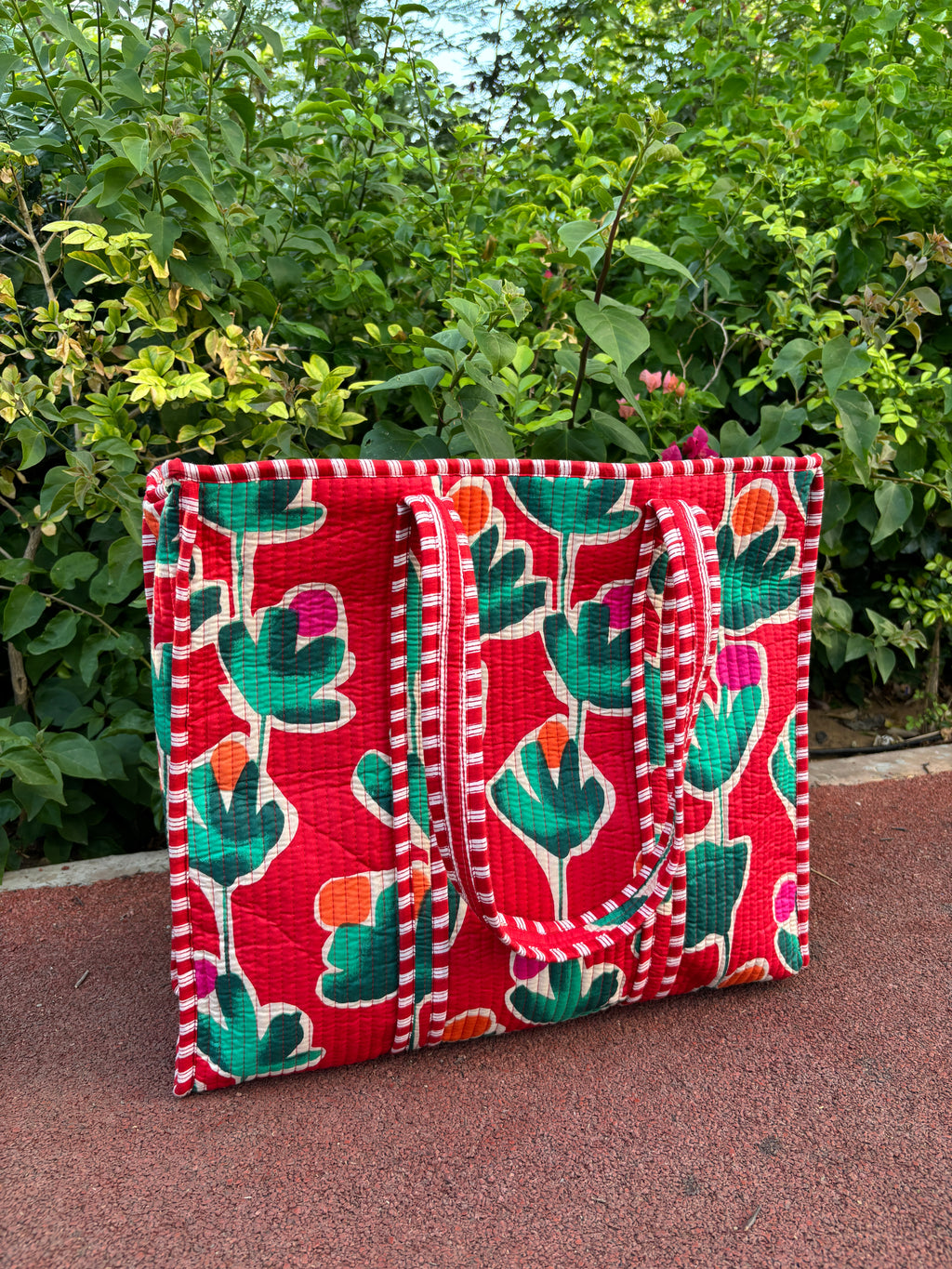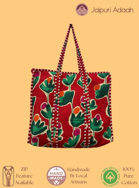 Rose red quilted tote bag