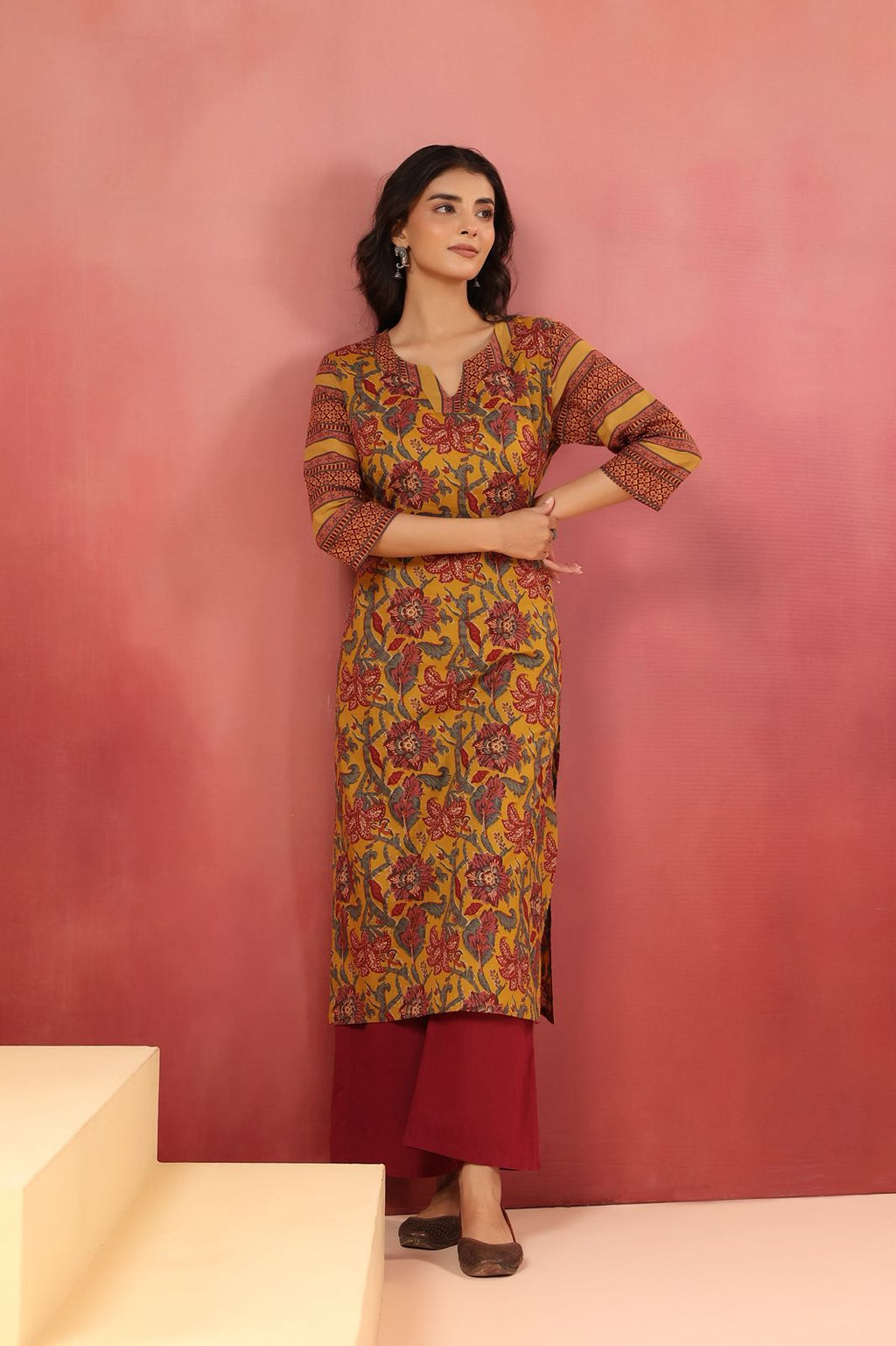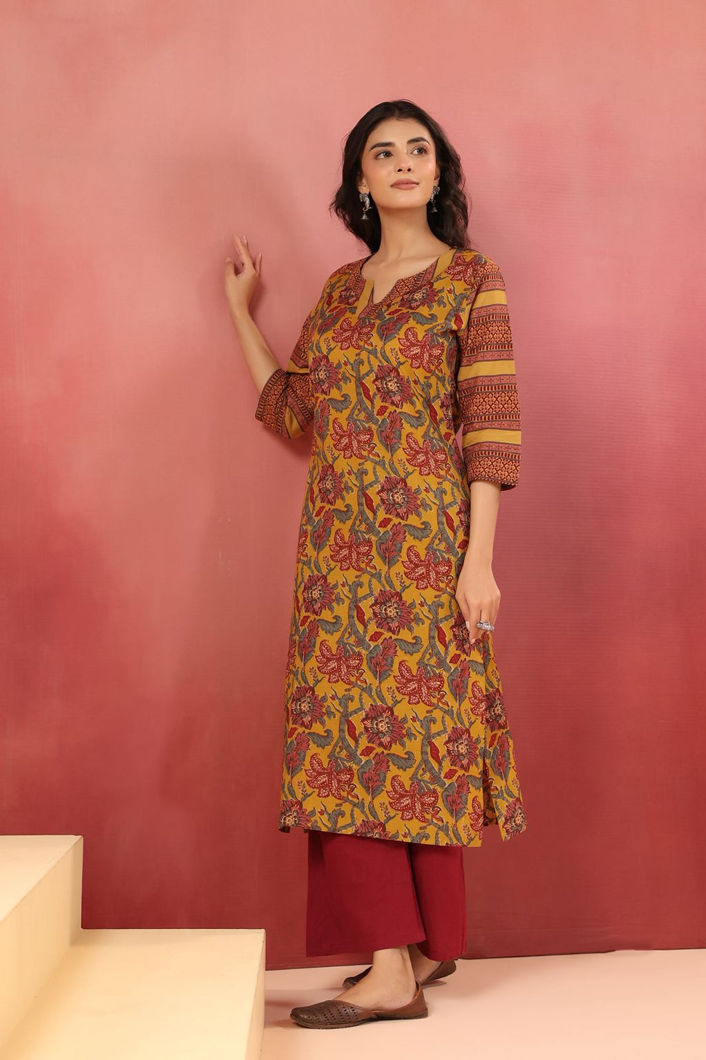 Brighten your wardrobe with this cheerful Berni mustard kurta, where vibrant florals dance across soft cotton fabric. Perfect for those days when you want comfort without compromising on style, this long-length piece effortlessly transitions from casual gatherings to festive celebrations. The playful floral print adds personality to your ethnic collection, while the breathable cotton keeps you cool and comfortable all day long. A versatile essential that brings warmth and joy to your everyday look.