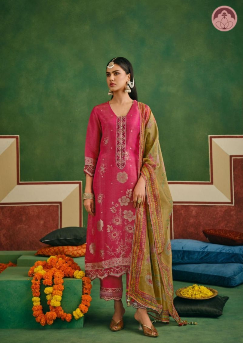 TOP - PURE GIRAFFE JACQUARD WITH EMBROIDERY ON NECK, DAAMAN & SLEEVES WITH FANCY LACE WORK