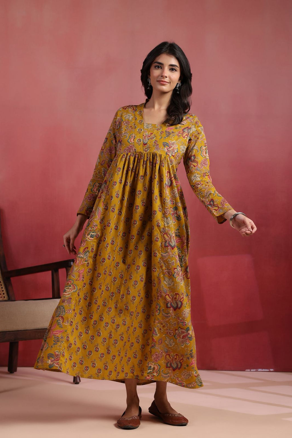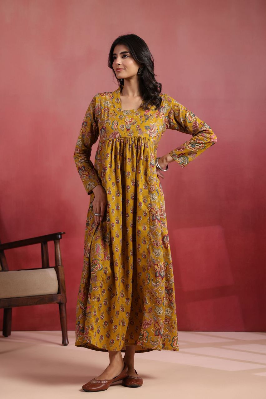 Refresh your everyday ethnic wardrobe with this Elegant Mustard Floral Everyday Kurti. Designed in a rich mustard hue, the kurti features charming all-over floral prints that add a warm and graceful appeal. Styled with a flattering A-line silhouette and a softly gathered yoke, it offers a comfortable yet elegant fit for all-day wear. The full sleeves and breathable fabric make it suitable for daily wear, office use, and casual outings. Pair it with straight pants or leggings to create a timeless and effortlessly stylish ethnic look.