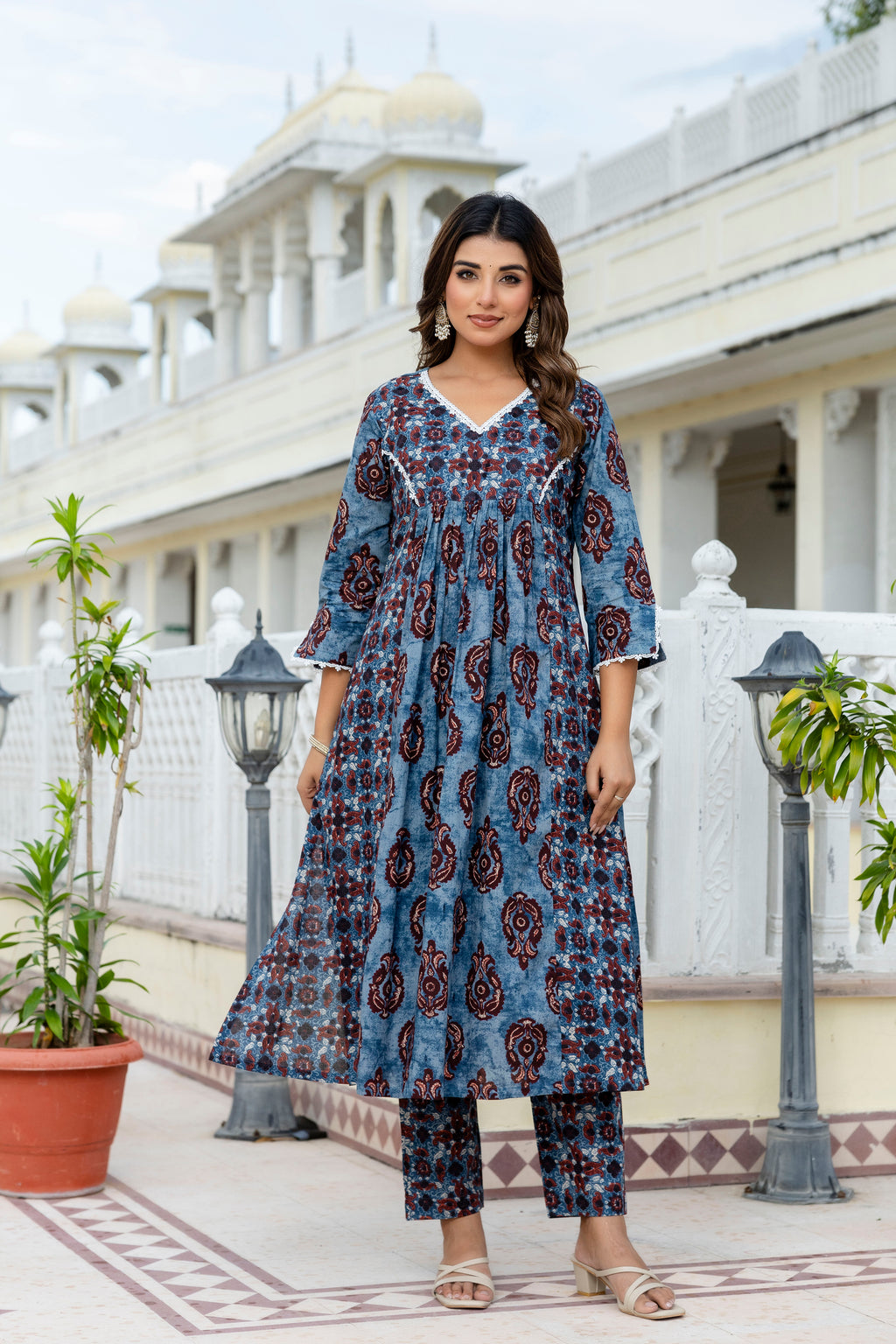 Elevate your traditional wardrobe with this Neela Indigo Cotton Suit Set, paired elegantly with a delicate chiffon dupatta. Crafted from breathable cotton, this ensemble ensures comfort and grace, while the intricate lace detailing adds a subtle touch of refinement. Perfect for both casual and festive occasions, it blends timeless style with modern sophistication.