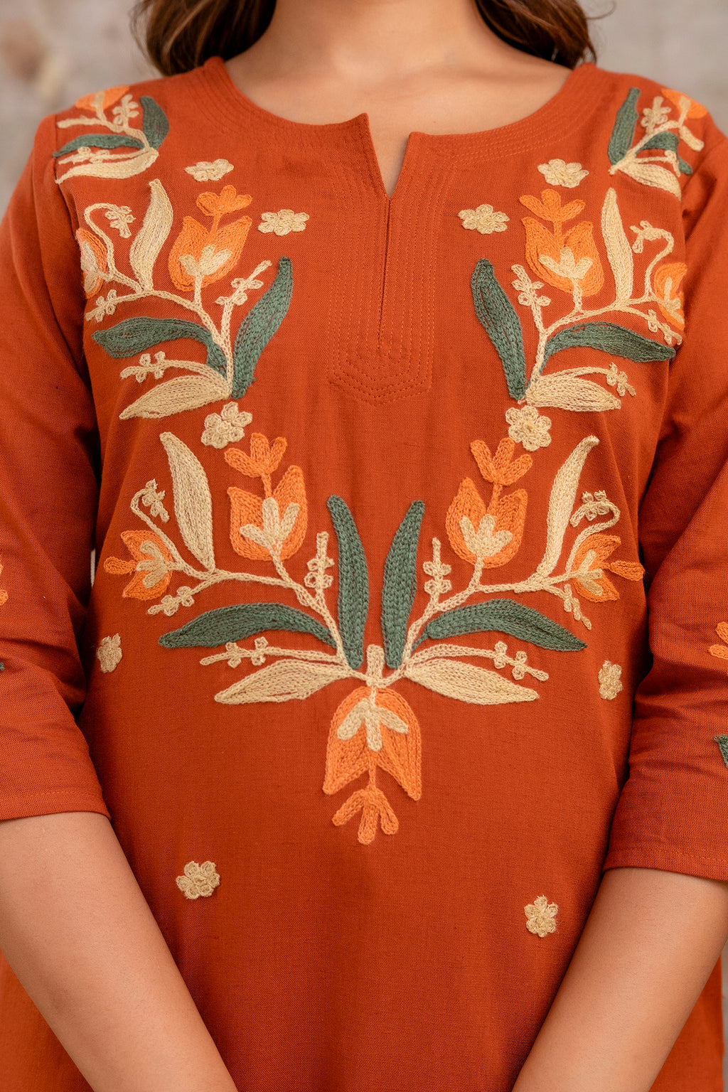 Elevate your wardrobe with the Sarang orange cotton co-ord set, crafted for comfort and style. Made from breathable cotton, this vibrant ensemble keeps you cool while showcasing a fresh, lively hue. Perfect for casual outings or relaxed gatherings, the matching pieces offer effortless coordination and a chic, put-together look. Embrace both ease and elegance with this versatile set designed to brighten your everyday wear.