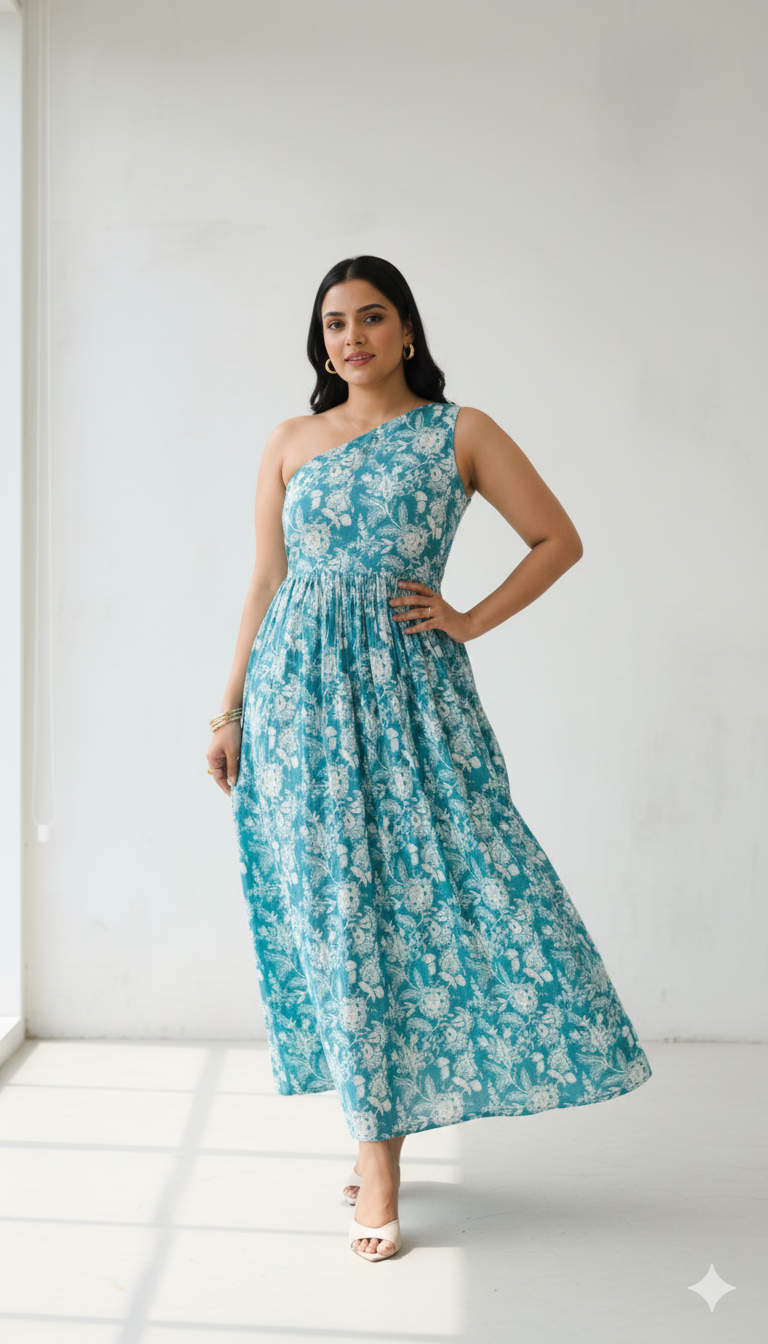 Dive into elegance with this stunning Sea Blue Bloom One-Shoulder Midi Dress! The asymmetrical neckline adds a dash of modern flair, while the flowing midi length keeps things effortlessly chic. Perfect for brunch dates, evening soirées, or whenever you want to turn heads, this dress strikes the ideal balance between sophisticated and fun. The rich sea blue hue flatters every complexion, and the one-shoulder silhouette creates an instantly polished look. Slip it on and let your confidence bloom!