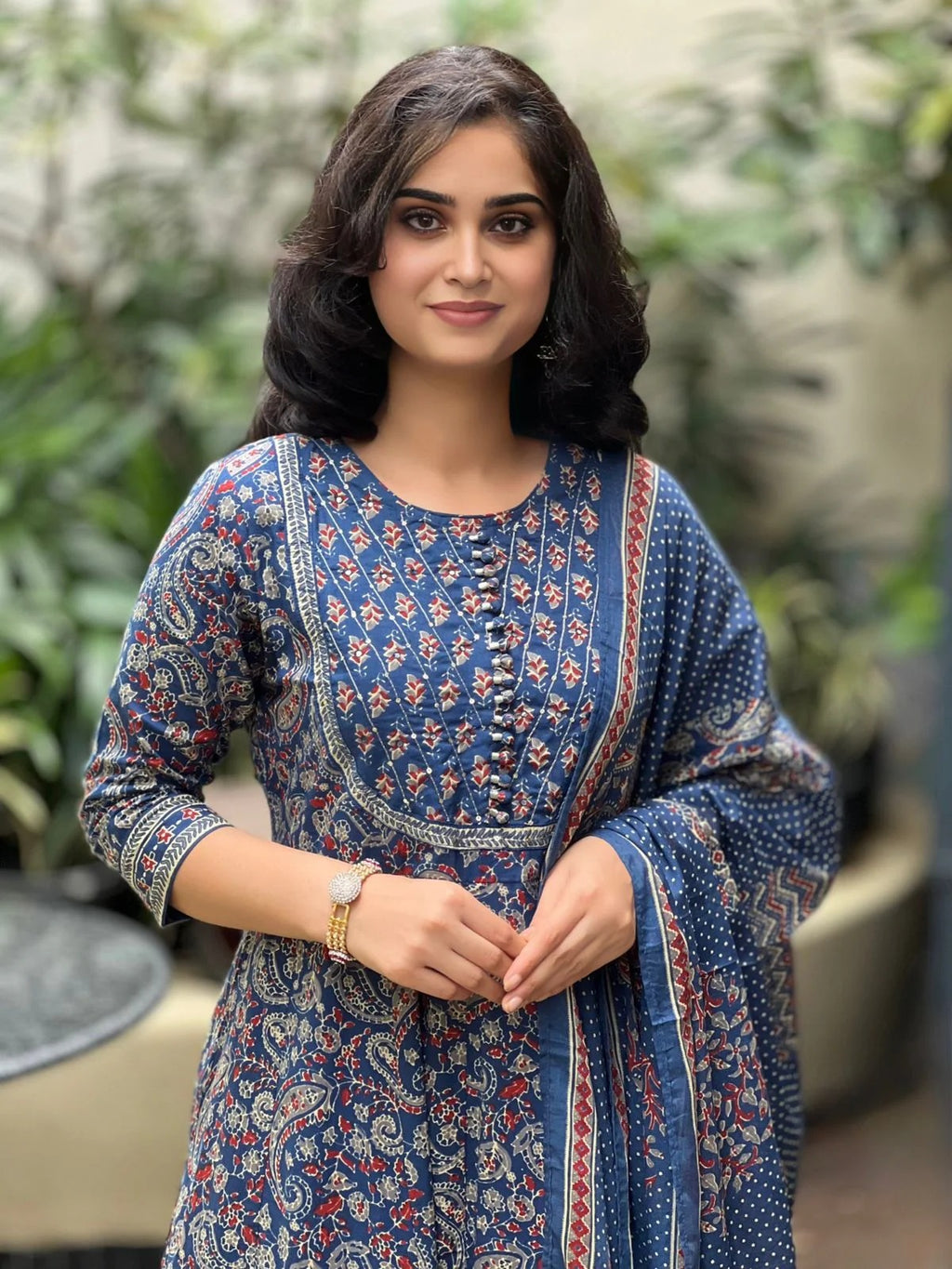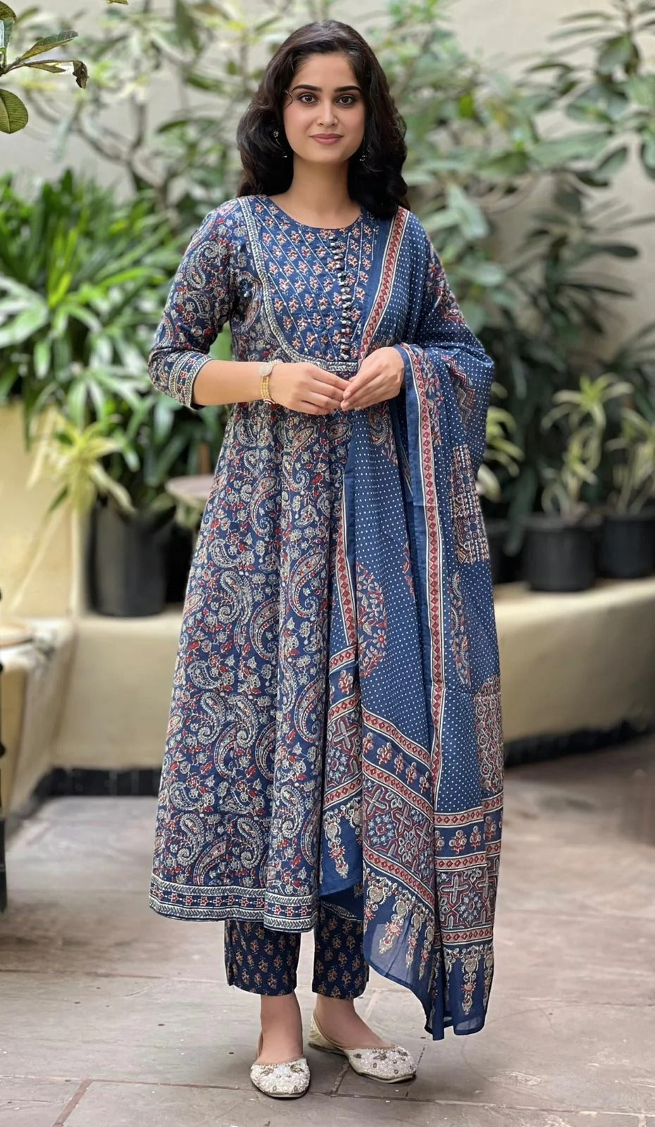 Embrace timeless elegance with this Traditional Maroon Paisley Print Cotton Suit Set, featuring breathable cotton fabric for all-day comfort. The intricate paisley design adds classic charm, while the accompanying mul cotton dupatta enhances the ensemble with a soft, luxurious touch. Perfect for occasions that call for understated sophistication, this suit set offers a graceful blend of tradition and comfort.