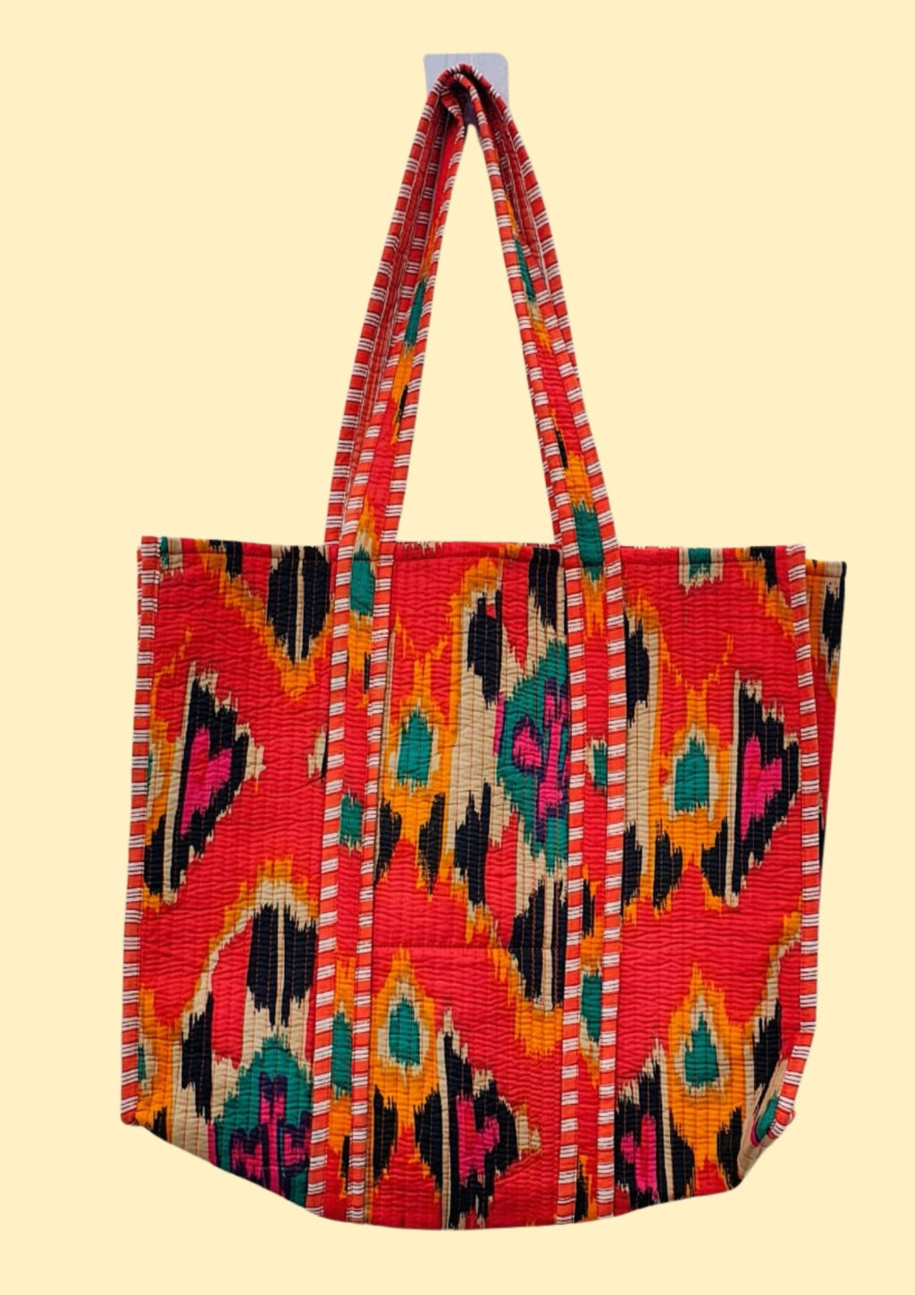 Discover the perfect blend of artistry and practicality with this Vibrant Ikat Print quilted tote. The eye-catching traditional pattern brings authentic craftsmanship to your everyday carry, while the quilted design ensures lasting strength through daily use. Spacious enough for work, shopping, or travel, this versatile bag elevates any outfit with its rich visual appeal. Invest in a piece that combines cultural heritage with modern functionality—a tote that works as hard as you do while turning heads wherever you go.